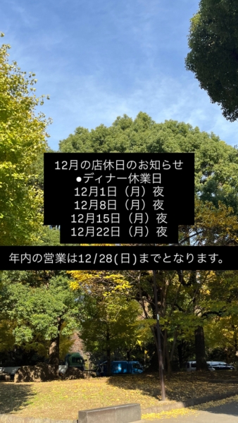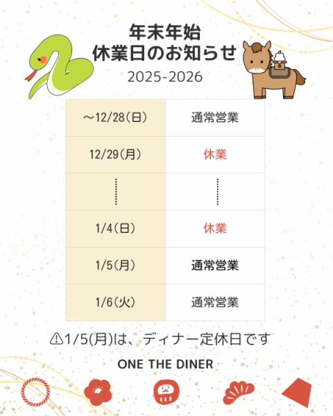 目黒のステーキ・ハンバーガー「ワンザダイナー」のブログ 12月&年末年始の営業について‼️