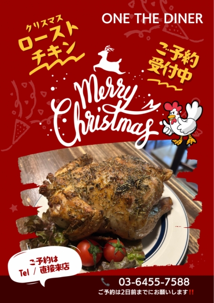 クリスマス限定「ローストチキン」 2025-12-14 13:20:04 去年に引き続き、クリスマス限定でローストチキンの販売をします🎄店内/テイクアウト ¥3500⚠︎仕込み・焼き上げに時間がかかるため、事前予約制となっております。2日前までに店頭またはお電話にてご予約ください‼️📞 03-6455-7588
